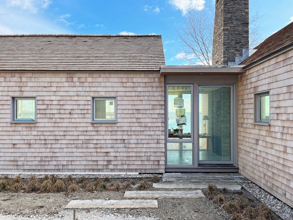 A coastal home renovation and addition on Martha's Vineyard will be a year-round residence with views of Sengekontacket Pond. Rooms are organized to provide ample access to light and fresh air, provide dedicated space for painting and writing, and a greenhouse for plantings/potting.